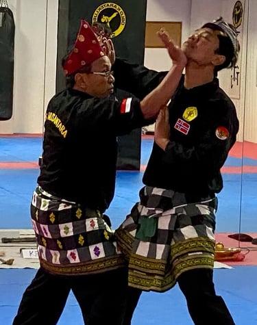 In pencak silat, the self-defense aspect can be seen in basic movements such as punches, kicks, elbows, stances, step patterns, pairs of gestures, joint manipulation, evasion, etc.